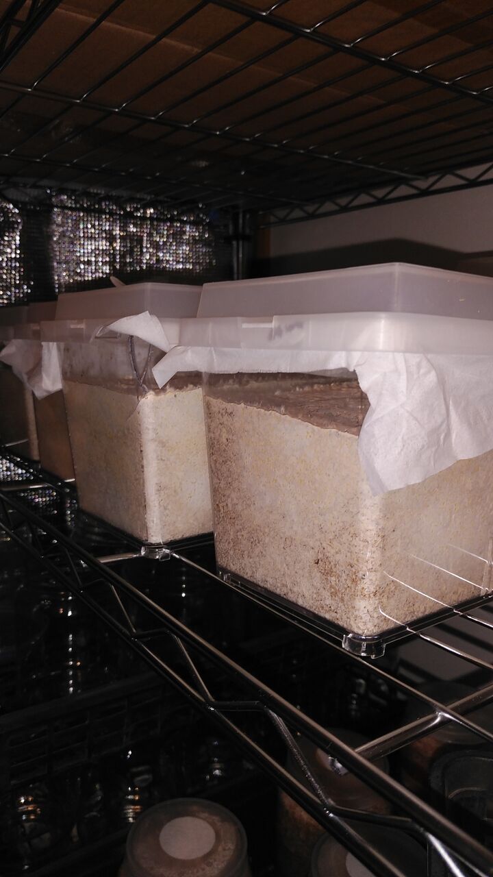最初の2回は神長さんの菌床でセットしたのですが、3回目は産卵1番を使ってます。微妙な感じです。加水の具合が悪いんだろうなぁと思ってます。上手くはいきませんね。何事も経験です。